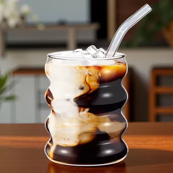 Diamond Textured Glass Mug with Handle – Golden 13oz Teacup for Hot & Cold Drinks 1 Pc